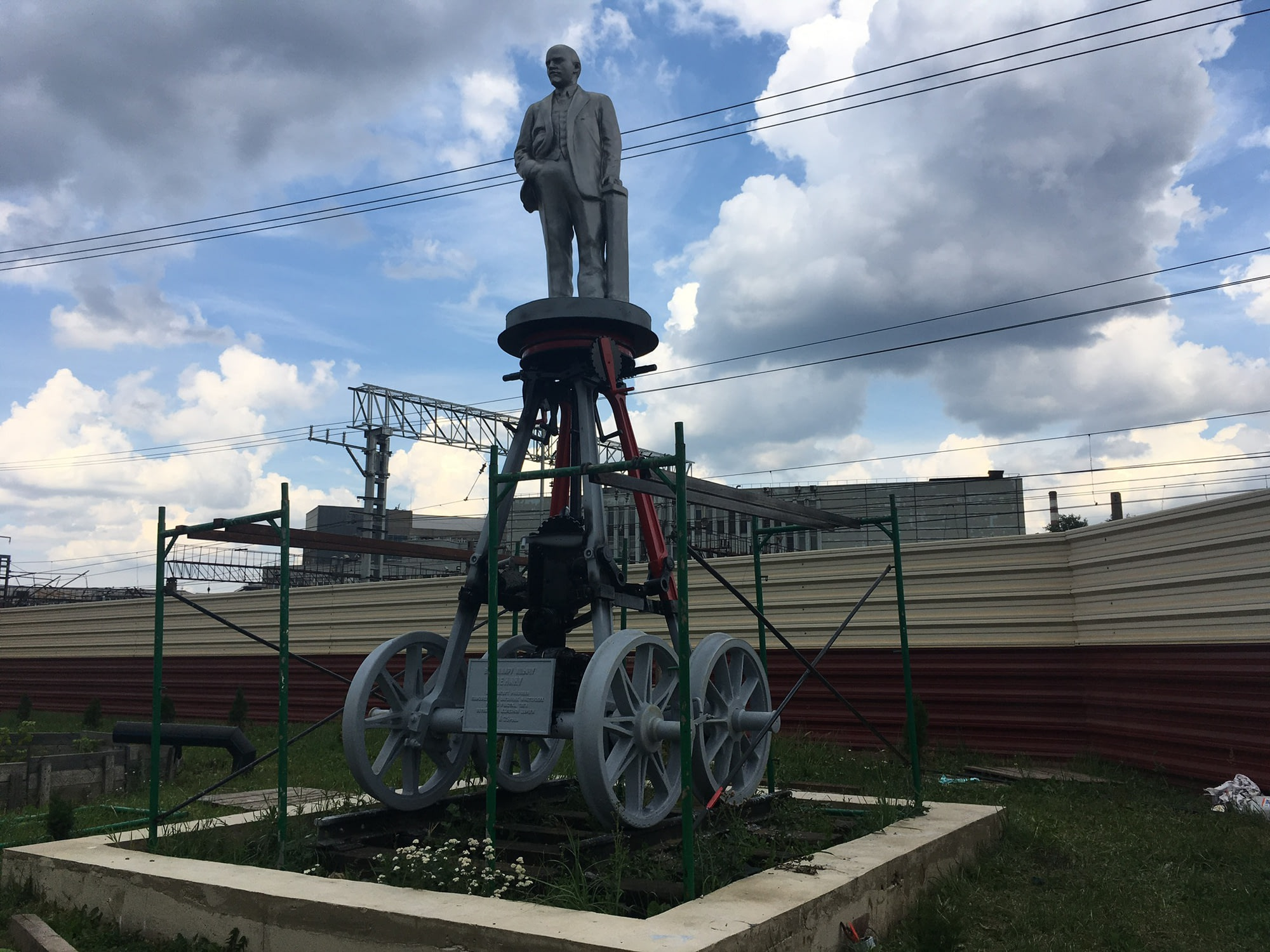 - six whegged robot with a 3d Bruno on it. Like Lenins bust on train tracks:
